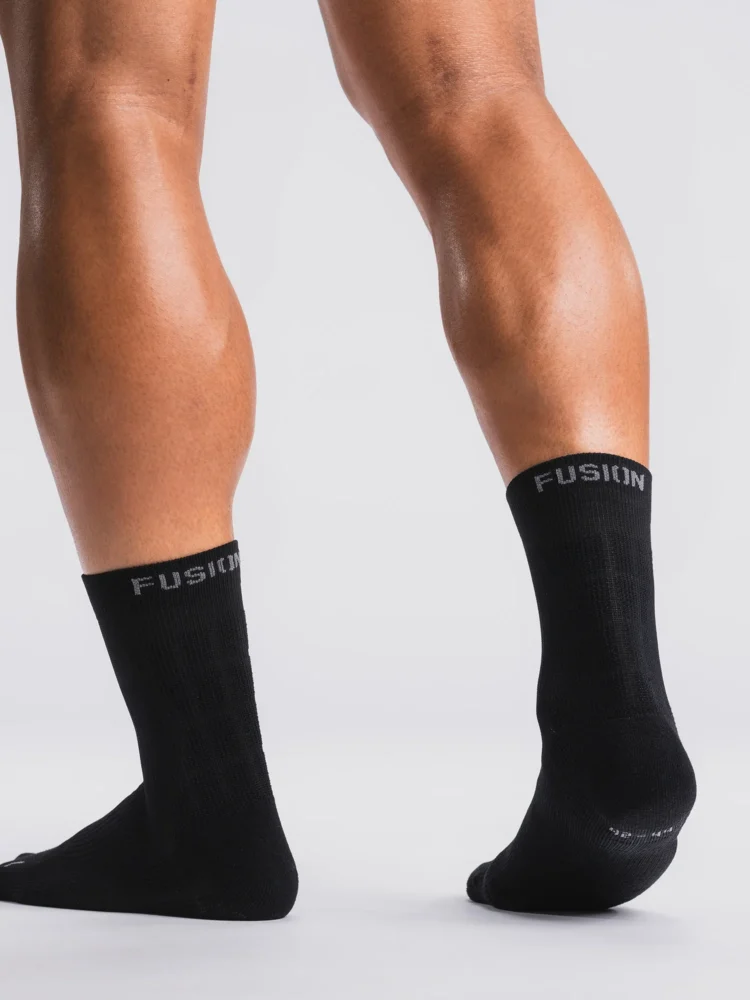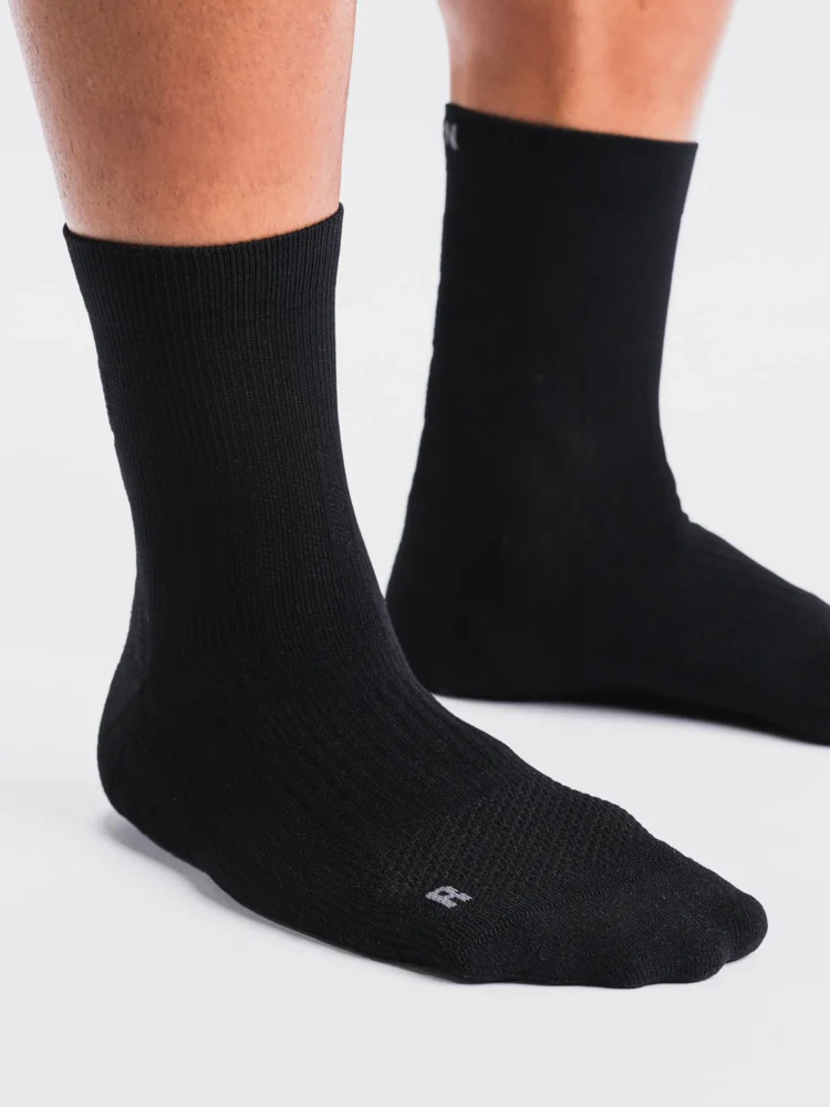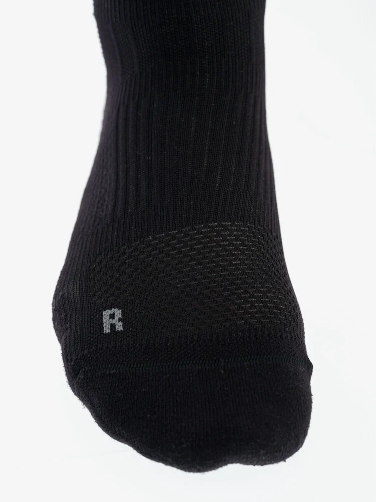Et par virkeligt behagelige og velsiddende strømper tilpasset i form og funktion til løb. De er forsynet med micro-velour fodsål og er strikket i pasform til henholdsvis venstre og højre fod.