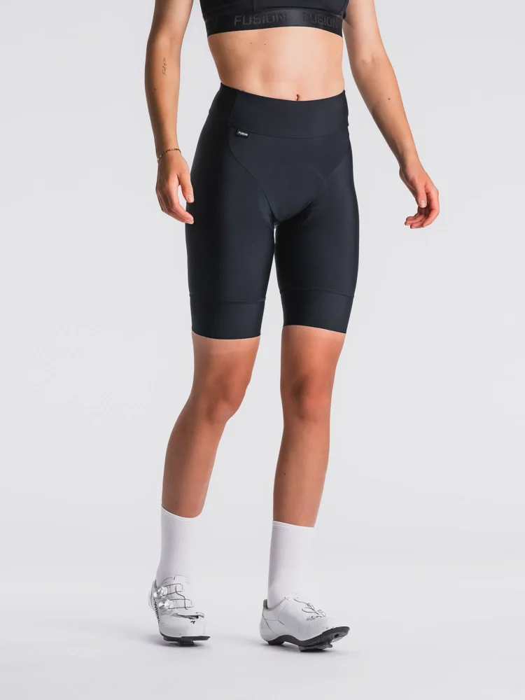 Womens Cycling Shorts er skabt til kvinder, der ønsker et selerfrit alternativ uden at gå på kompromis med pasform, støtte og komfort. Shortsene kombinerer teknisk funktionalitet med et enkelt, stilrent udtryk – og er designet til at yde på både de korte og lange ture. Taljen er konstrueret med en blød, indvendig lining, som giver høj komfort og ligger behageligt mod huden. Ydersiden består af samme lette og fleksible materiale som benene og sikrer en stabil og glat pasform, der bliver siddende, som den skal. Materialet er let og åndbart og giver dig en tæt, men fri fornemmelse, mens det støtter muskulaturen under bevægelse. Free-cut benafslutninger med integreret silikonegreb holder shortsene sikkert på plads uden at stramme eller irritere. Indvendigt finder du en formstøbt siddepude med tredobbelt densitet. Den er fremstillet i ét stykke og har glidende overgange, som fordeler trykket jævnt og minimerer risikoen for siddesår – også på de længere ture. Womens Cycling Shorts er et alsidigt valg til både pendling, landevejstræning, spinning og daglig motion. Et selerfrit design, hvor komforten stadig er helt i top.